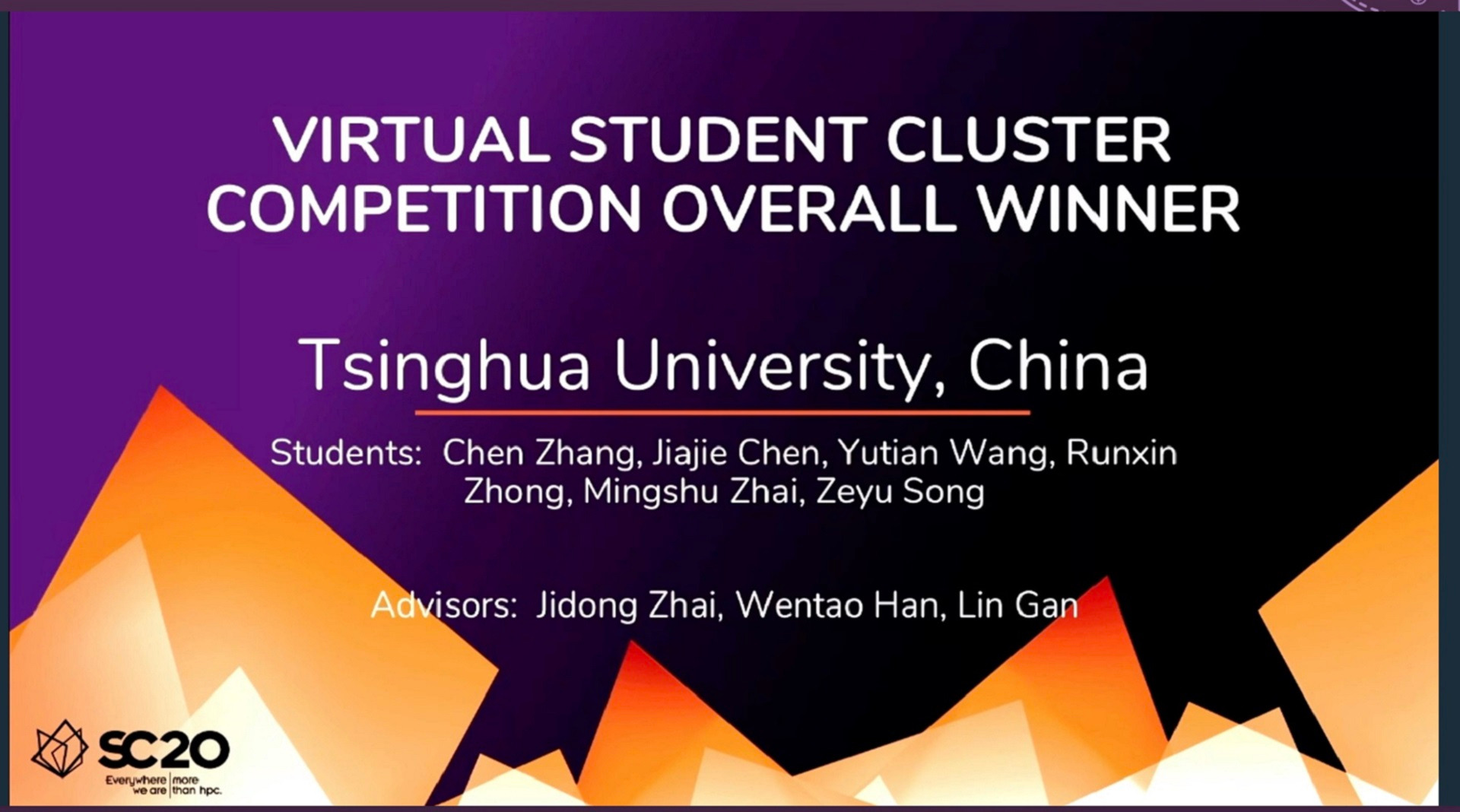 Tsinghua student supercomputing team tops 2020 Student Cluster Competition (SC20)