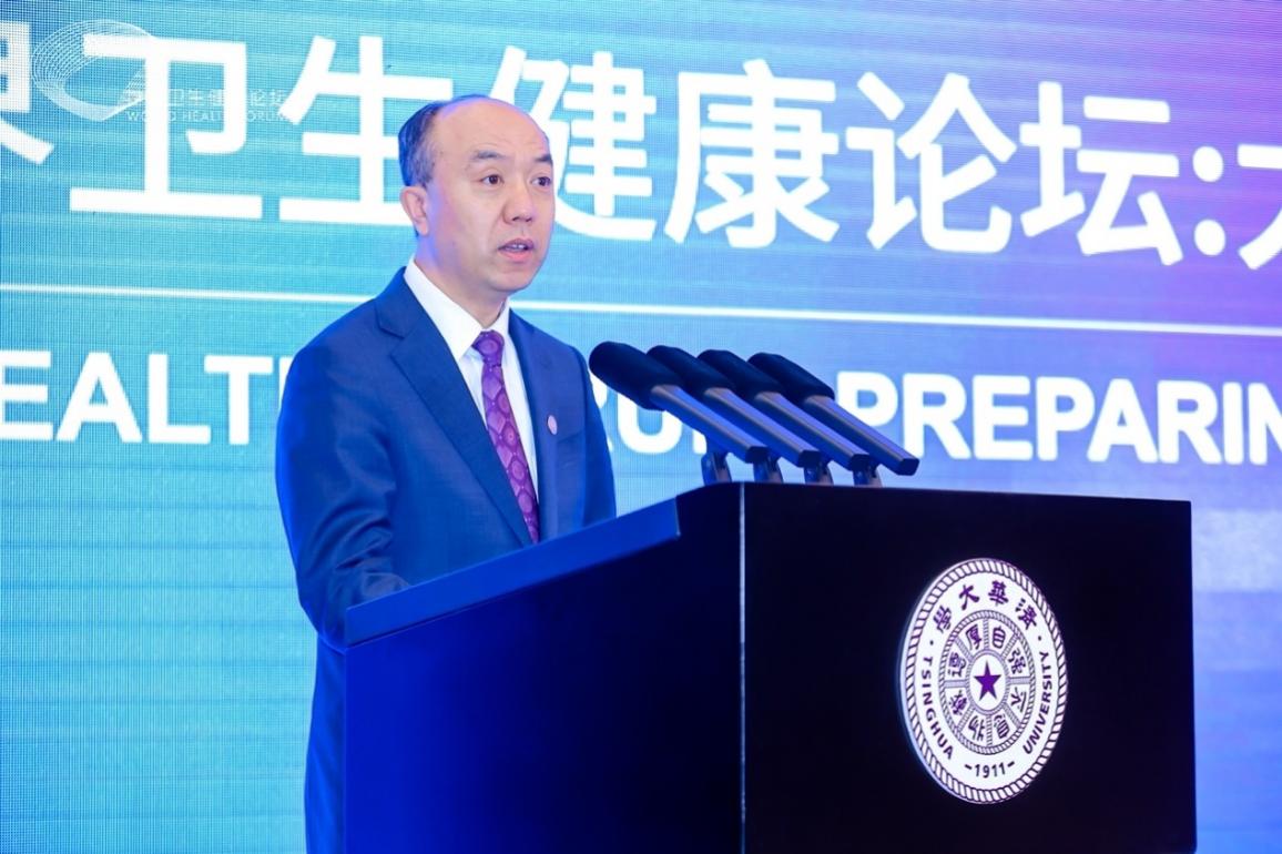 In his opening remarks, Tsinghua University President Wang Xiqin highlighted that while academic disciplines and professional roles become increasingly specialized, the challenges facing humanity are becoming more interconnected. Universities, with a focus on integrating talent cultivation and technological innovation, and serving as an important platform for international exchanges and cooperation, must embrace changes to be prepared for addressing unforeseen major risks. He emphasized the importance of focusing on real-world problems to improve the quality of talent self-cultivation, embracing a systemic approach for ongoing university innovation, and actively promoting international exchange and cooperation with a global perspective. Wang reiterated that following the principle of putting people and their lives first, Tsinghua University has been committed to the development of public health and the showcasing of Chinese expertise in public health. He conveyed the hope that this forum delves into global public health issues, and promotes the integration and collaborative innovation across the entire spectrum of universities, research institutions, governments, professional organizations, healthcare systems, and supply chain companies. It is hoped that all parties, guided by the principle of building a community with a shared future for mankind, can shoulder their historical responsibilities and meet the challenges of our times, and strive to build a healthy China, achieve "Universal Health Coverage", and promote the building of a global community of health for all.