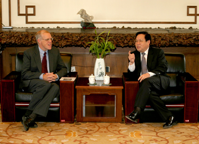 Stanford University President John Hennessy and Tsinghua President Gu Binglin also discussed the strengths their two schools have in common, especially their high reputation and long history.