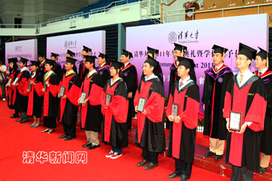 Speaking during the ceremony at the university campus, Tsinghua President and Chairman of the Degree Conferral Committee Gu Binglin congratulated the graduating students, commending them for their hard work and contributions to the development of Tsinghua. He expressed the hope that the students will bear in mind the encouragement from Chinese President Hu Jintao in his speech at the celebration for Tsinghua’s 100th anniversary and strive to develop their academic and moral excellence, their innovative minds and hands-on experiences, and to combine their all-round development with their individual specialties.
