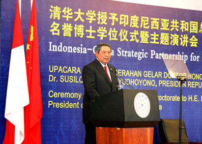 After the ceremony, President Susilo delivered a speech entitled “Indonesia-China Strategic Partnership for Peace and Prosperity in the Asia-Pacific”.