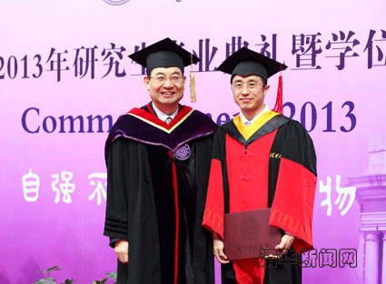 More than 1,300 graduate students received degrees at Tsinghua University's 2013 Spring Graduate Commencement Ceremony on the morning of January 15th. Among them, 318 earned doctorates and 1012 received master's degrees.