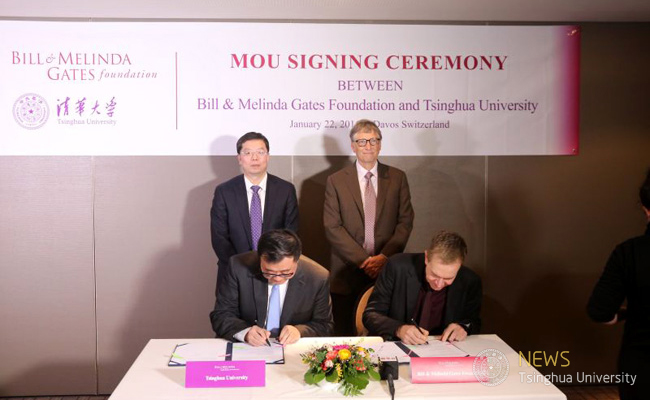 At a meeting in Davos, Switzerland on January 22nd, Qiu Yong, President of Tsinghua University, and Bill Gates, Co-chair of the Bill & Melinda Gates Foundation (BMGF), agreed to co-found the Global Health Drug Discovery Institute (GHDDI) in Beijing, China, and signed a memorandum of understanding.