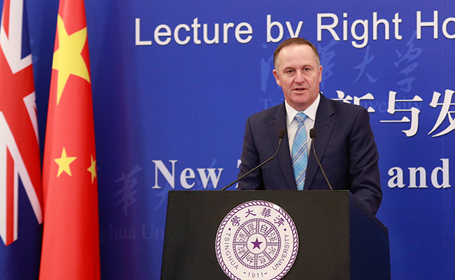 New Zealand Prime Minister John Key visited Tsinghua University and delivered a speech to the Tsinghua Global Vision Lecture Series on April 19th.