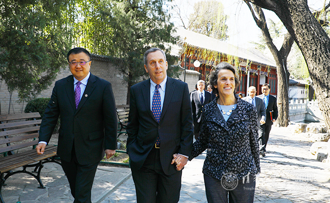 President Qiu introduced to Professor Bacow a series of measures recently introduced by Tsinghua University in its reform of education and teaching, which includes a compulsory course of writing and communication set up last year to train the logic and critical thinking of undergraduate students. Apart from that, the old school rule that students must pass a swimming test before graduation has also been restored in an effort to carry forward the excellent sports tradition of Tsinghua University. Furthermore, the Tsinghua University Art Museum has also been established to enhance the humanistic and artistic atmosphere of the campus in an all-round way.