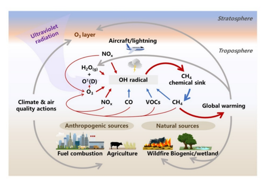 Fig. 3 Complex interactions between air pollution and OH and CH4 budget