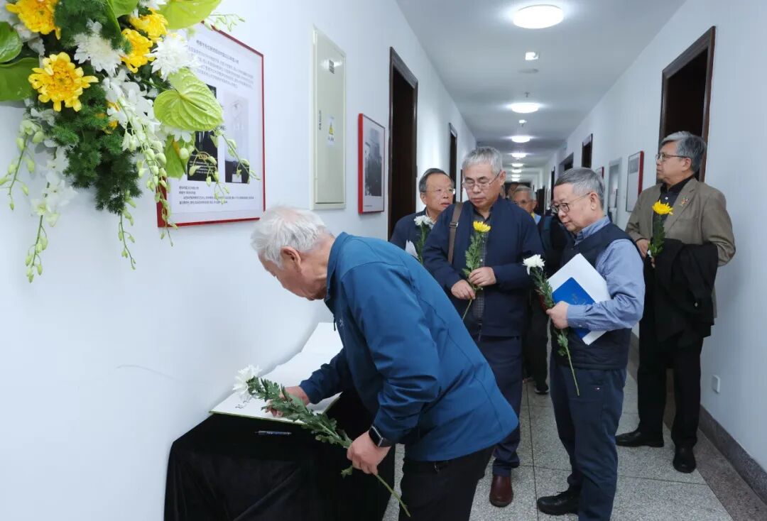 Mourners offer chrysanthemums, view the late Professor Chen Ning Yang’s portrait, and sign the condolence book at the entrance of the Memorial Room.