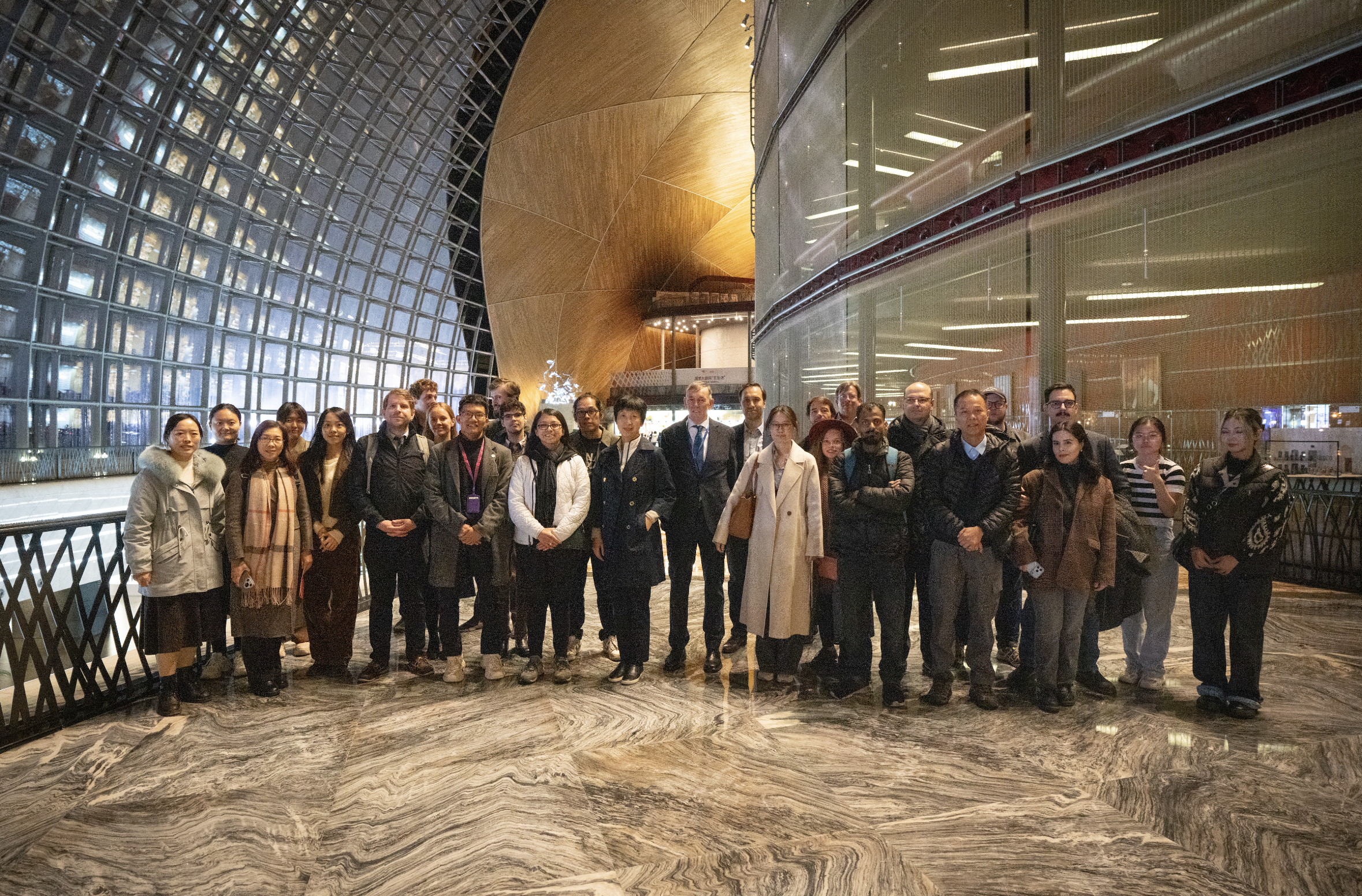 The event began with a guided tour of the NCPA’s main hall and permanent exhibition Stage of Glory: An Exhibition of NCPA’s Achievements. Through engaging explanations, the scholars not only appreciated the harmonious integration of architecture and art but also gained a comprehensive understanding of the NCPA’s role—as a hall for high art, a platform for showcasing China’s cultural vision, and a theater committed to public accessibility—along with its latest explorations in technology-driven artistic creation and dissemination. As David Robinson, a scholar from Tsinghua University, remarked, “Being able to participate in the guided tour of the NCPA provided a much deeper understanding than a simple visit alone, which was truly fantastic.”