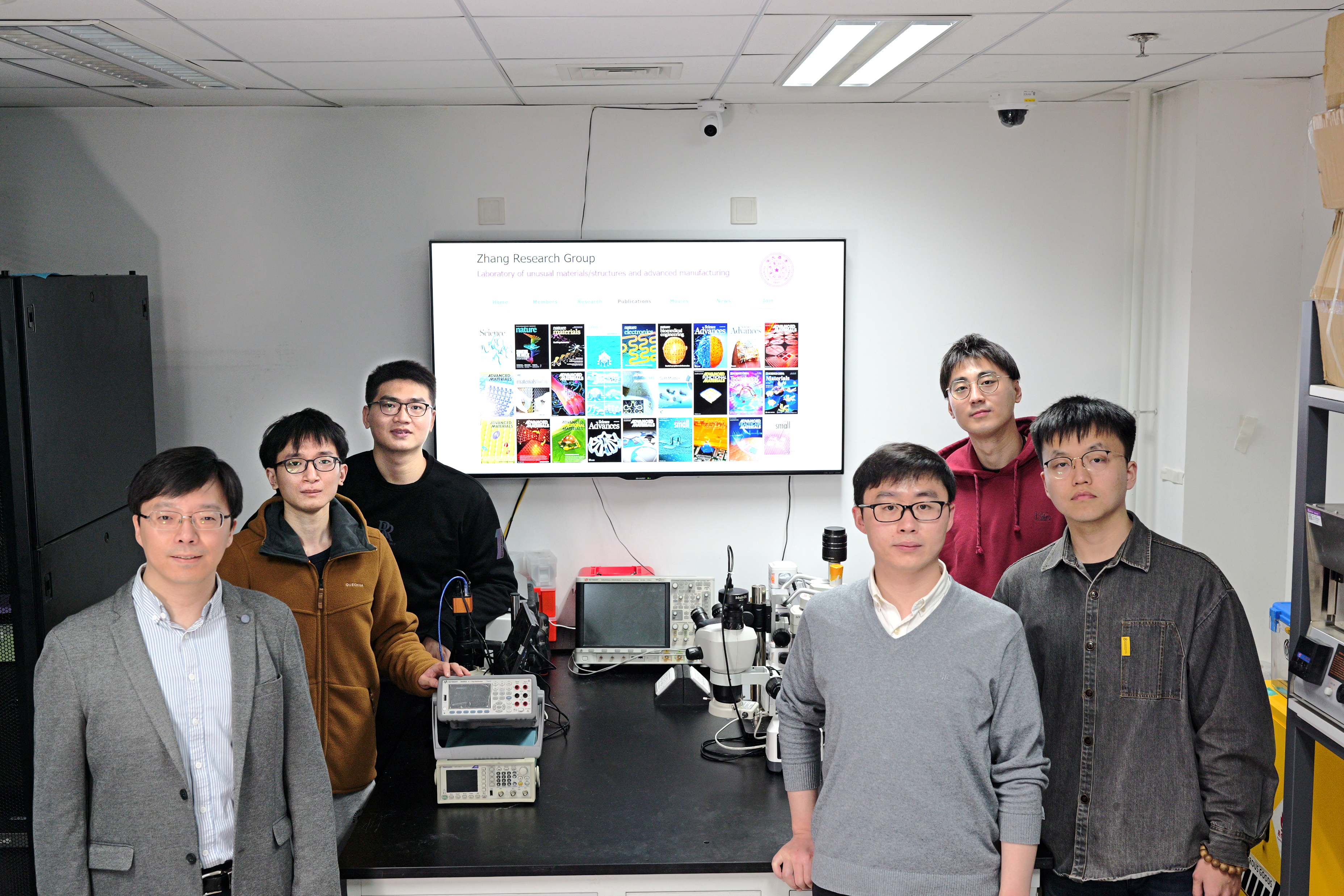 Yihui Zhang (at left) and his team from Tsinghua University’s Applied Mechanics Laboratory and Laboratory of Flexible Electronics Technology.