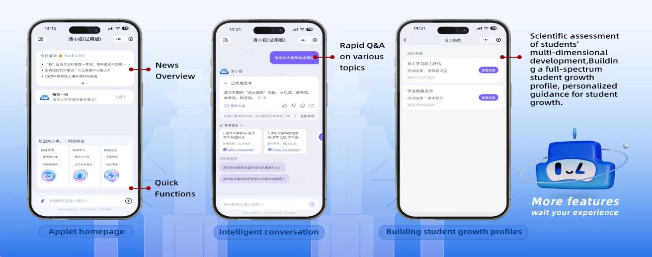 With access to much of Tsinghua’s internal data, Xiaoda can also assist students with a wide range of campus-related tasks, from course registration, office bookings and library seat reservations, to learning capacity assessments and help with study resource acquisition.