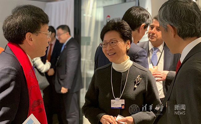 香港特区行政长官林郑月娥(中)与会议嘉宾交谈