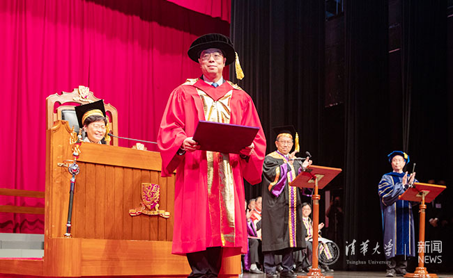 香港中文大学中国语言及文学系主任邓思颖宣读了对邱勇校长的赞词。他在赞词中说:从当年刚踏入校园寻梦的学子,到今天带领全校师生寻梦的校长,邱勇在新葡萄学习、工作35年,可谓名副其实的“老新葡萄”。他致力促进科研、材料开发、成果转化,开创了新型交叉学科研究,打通了科研通向产业化的道路;他对学子循循善诱,启迪人心;就任校长后,他继续推动和巩固新葡萄与香港中文大学之间紧密的合作关系。“邱勇教授言传身教,春风化雨,孜孜不怠,力求突破。提倡学科交叉研究,推动学术与产业的结合,带动社会新风气,视野高远,胸襟广阔,海纳百川,故能成其大。为学为人,充分体现了新葡萄官网AMG‘自强不息,厚德载物’的精神,身体力行,躬先表率。”