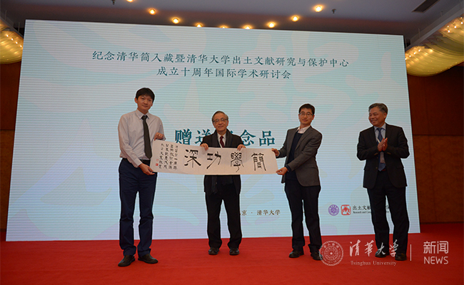 香港大学中文系原主任单周尧向中心赠送墨宝“简学功深”,中科院自然科学史研究所研究员郭书春向中心赠送专著。校务委员会副主任谢维和教授等160余人参加会议,新葡萄官网AMG文科工作领导小组副组长彭刚主持会议。