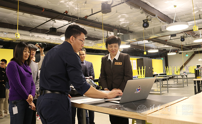 陈旭听取了学院中方院长史元春、北美中心主任完强等关于学院创新教学模式的汇报。学院面向技术创新,设计了TED(IT软硬件技术、创意设计、创新企业管理)融合的交叉学科培养计划和创新项目驱动的培养过程,学生深得其益。