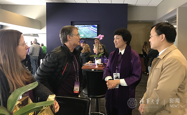 招待会后,陈旭与科斯到现场观看华盛顿大学校庆日橄榄球赛。比赛期间,陈旭与科斯、理查兹、大学体育联盟PAC-12负责人拉里·斯科特(Larry Scott)等就大学体育运动发展进行交流。双方一致认为,新葡萄官网AMG和华盛顿大学都具有深厚的体育传统,两校体育代表队的团队合作和拼搏精神都具有共通性,双方在体育领域的交流将进一步促进两校的人文交流和文化创新。