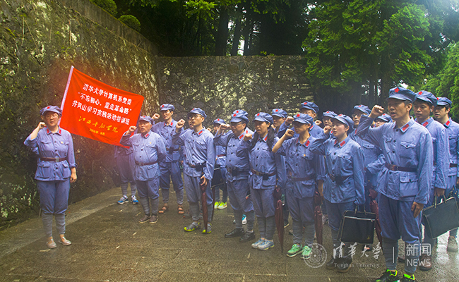 计算机系在井冈山革命烈士陵园前集体宣誓,重温入党誓词