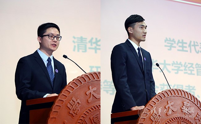 杭承政、王子宁代表在校学生发言。杨艳宾 摄