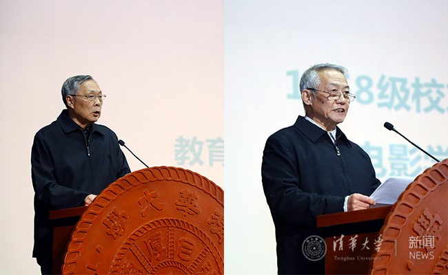 宋尽贤、王凤生代表老校友发言。杨艳宾 摄