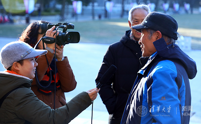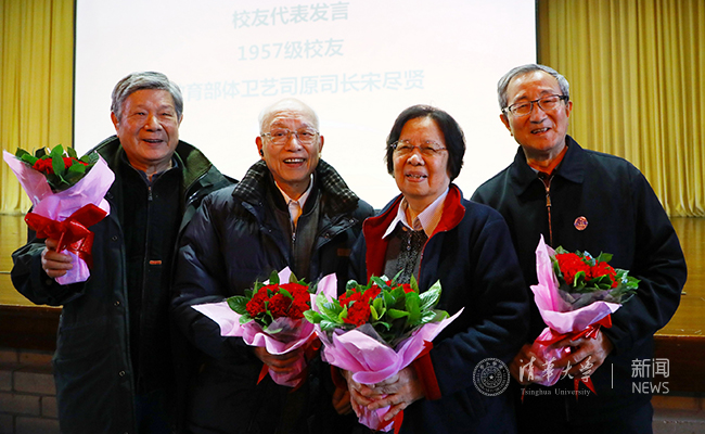 1956级机械系校友李希汉、周俊全一起参加了大会。今年80岁的李希汉曾是学校冰球队一员,至今仍难忘和队友们在学校湖面上打冰球、同学们在山坡上加油助威的青春岁月。“虽然我80岁了,但一摔跟头马上就能自己起来,这得益于学校的体育精神!”