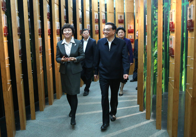 校领导陪同李克强总理一行考察。苑 洁 摄