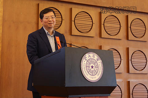 邱勇欢迎校友返校。苑 洁 摄