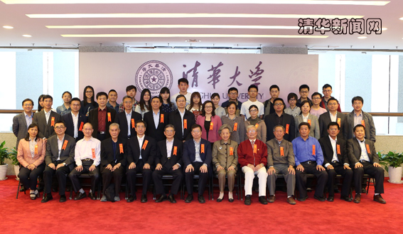 邱勇与校友合影留念。记者 苑 洁 摄