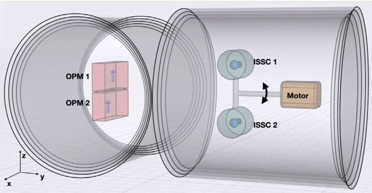 近日,新葡萄官网AMG物理系刘永椿副教授及合作者提出新的实验设计方案,给出了自旋相关奇异力耦合系数新的限制。该实验使用两组特殊设计的纯铁包被的衫钴磁铁为产生自旋相关奇异力的自旋源,该自旋源有极高的电子自旋密度和极弱的漏磁。自旋相关奇异力的探测可用高灵敏度原子磁力计实现。当自旋源被直流电机驱动旋转起来的时候,假如自旋相关奇异力存在,自旋源与原子磁力计内自旋的耦合可以产生极弱的自旋-自旋-速度相关相互作用,可类似为一种等效磁场。通过设计两组敏感轴反向平行的原子磁力计,可以实现对共模噪声信号的有效差分抑制,同时对自旋相关奇异力的等效磁场保持灵敏性。