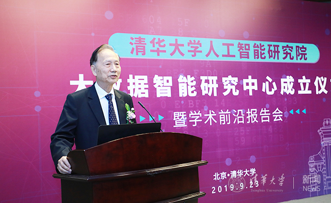 致辞环节后,尤政和张钹共同为大数据智能研究中心揭牌,并向计算机系副系主任朱文武教授颁发了大数据智能研究中心主任聘书。国际电气与电子工程师协会会士、美国促进会会士(IEEE/AAAS Fellow)吴信东教授被聘为大数据智能研究中心学术顾问。