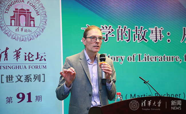 揭牌仪式后,马丁·普赫纳做客“新葡萄论坛-世文系列”,并带来题为“文学的故事:从刻写板到因特网”的讲座,阐释了世界文学借助不同技术发明而得以传播和发展的各个阶段。他表示,“讲故事”对于文明的传承具有重要作用,当讲故事与书写技术结合起来的时候,就产生了强大的力量。他展示了陶土刻写板、纸、羊皮纸、印刷术和互联网等技术发明给文学带来的深刻影响,以及它对社会文化生活和人类文明的巨大变革作用。普赫纳强调,当前互联网和手机的新技术更是深刻地改变了人们“讲故事”的体验,激发了更为丰富而多元的讲故事形式。