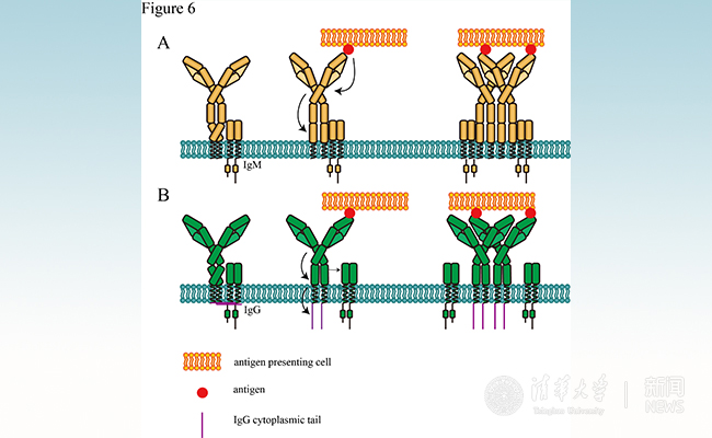 抗原结合引起的IgM-与IgG-BCR构象变化的模式图