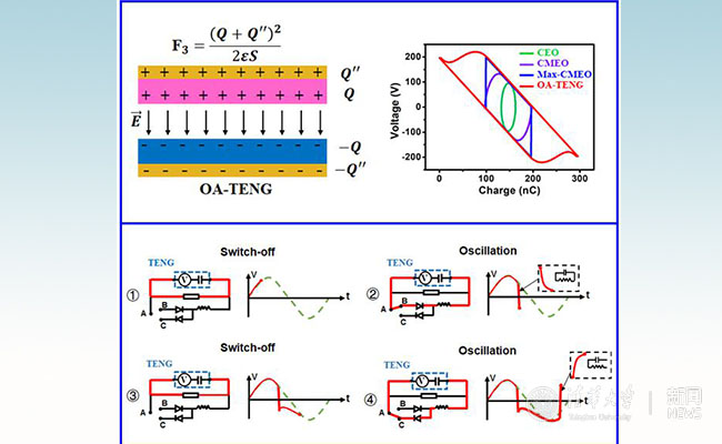 新葡萄新闻网7月10日电 近日,新葡萄官网AMG微纳电子系王晓红教授课题组与美国佐治亚理工学院王中林教授课题组在《先进能源材料》杂志(Advanced Energy Materials,影响因子:24.88)上线发表了题为“通过电路振荡以实现纳米摩擦发电机的性能提升”(“Boost the Performance of Triboelectric Nanogenerators through Circuit Oscillation”)的合作论文,首次提出一种通过自由电荷极性翻转提升电极等效电荷面密度的电源管理方法,进而突破了长期以来摩擦纳米发电机单周期内最大输出的限制。