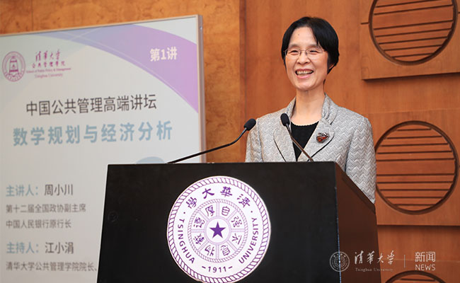 作为首讲嘉宾,周小川围绕“数学规划与经济分析”,结合大量实例,介绍了数学规划在设定目标、分析行为及“三部门模型”等经济分析工作中的应用,以达成获得最优解、完善制度设计、提高治理能力的目标。