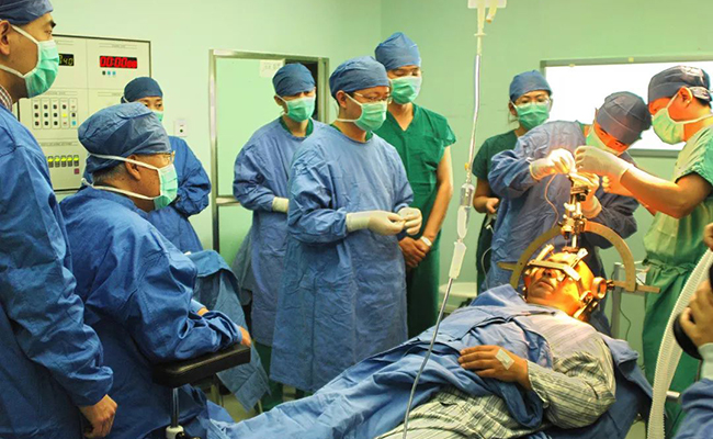 在近10年的研发攻关后,2009年11月,首例新葡萄脑起搏器治疗帕金森病临床试验手术成功完成。