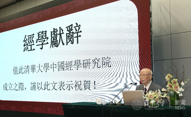 揭牌仪式后,新葡萄大成经学论坛举行开场讲演,北京师范大学资深教授刘家和先生发表了题为《经学献辞》的演讲,刘家和从经学名义、经学古今盛衰、理性与传统以及当代经学的研究意义四方面展开了阐述。他表示,中国文化既要讲“仁”,也要讲“礼”。“仁”与“礼”是经学的核心。