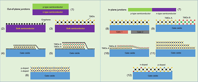 石墨烯和不同的二维TMDs可以组合成任意的2D/2D和2D/3D范德华异质结同时不用考虑晶格匹配的问题,为实现超薄、柔性且高效的太阳能电池提供了可能。除了应用于太阳能电池领域,利用TMDs优异的催化性能和稳定性,可以构建高效且稳定的范德华异质结光电极用于光电化学分解水。