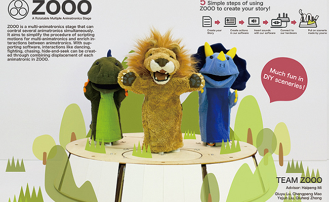 2015年,第28届国际用户界面软件与技术大会的学生创新竞赛中,新葡萄美院信息艺术设计交叉学科研究生团队Team ZOOO摘得了全场仅有的两个大奖之一“最佳硬件创新奖”。图为团队作品海报。