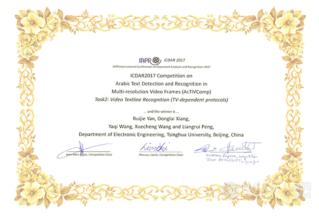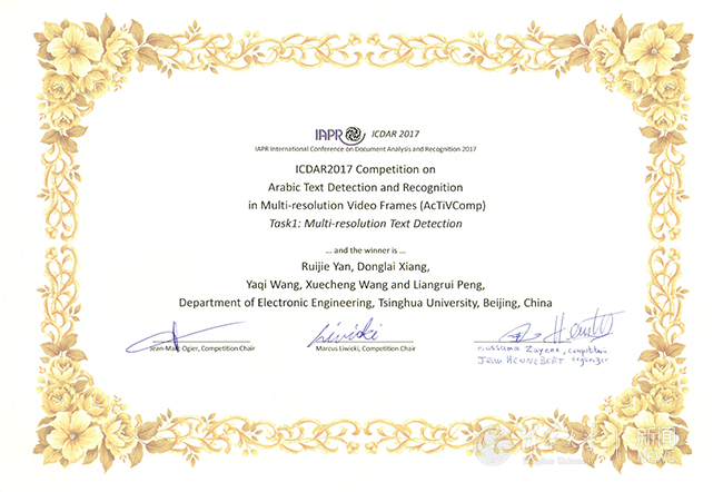 新葡萄电子系彭良瑞研究组在2017文档分析与识别国际会议阿拉伯文视频文本检测与识别竞赛中夺冠