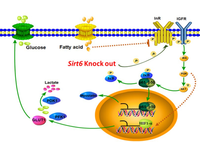 脂肪的摄入能够抑制Insulin/IGF-1信号通路的过度激活,减弱细胞对于葡萄糖的过度吸收和糖酵解过程,改善由于SIRT6缺陷所致的糖代谢异常以及衰老表型,其中肌肉组织的响应优于肝脏和褐色脂肪。同时,研究者实验证明了在细胞中具体发挥作用的是脂肪酸而非酮体(酮体为脂肪酸在肝脏中的代谢产物)。