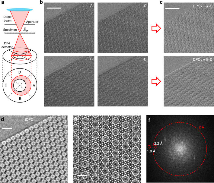 本文中所使用的iDPC-STEM技术是近几年刚刚兴起的一种基于STEM的成像模式。此成像技术具有以下特点。首先,iDPC-STEM是直接电子相位的成像模式,能够反映样品的投影电势信息;第二,iDPC-STEM图像衬度与原子序数近似呈线性关系,有利于轻元素和重元素同时成像;第三,iDPC-STEM模式电子利用率较高,且在图像积分过程中可以过滤不可积分的噪音信息,进而能够在极低电子剂量的条件下,同时保持较高的分辨率和信噪比,得到足够的结构信息。本研究结果进一步表明iDPC-STEM技术对电子敏感样品的低剂量成像和轻元素组分成像具有天然的优势。因此,iDPC-STEM技术在其他由轻元素组分构成的电子敏感材料的表征上具有广阔的应用前景。如图3的几种电子敏感材料,我们可以观察到UIO-66中的苯环和ZSM-5中直孔道上十元环结构,并首次可以看清SAPO-34的孔结构。这些结果为将来探究这些电子束敏感材料的缺陷、界面、表面等局部非周期性结构信息提供了新的工具。