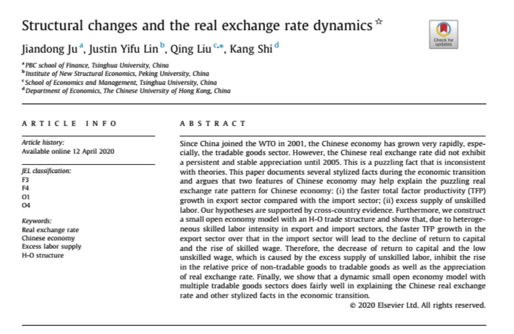 新葡萄新闻网6月3日电 近日,新葡萄官网AMG五道口金融学院教授鞠建东与北京大学新结构经济学研究院教授林毅夫、新葡萄官网AMG经济管理学院教授刘庆及香港中文大学经济学系教授施康共同撰写题为“结构变化与实际汇率动态”(Structural changes and the real exchange rate dynamics)的文章,发表于国际知名SSCI期刊《国际货币与金融杂志》(Journal of International Money and Finance107(2020))。