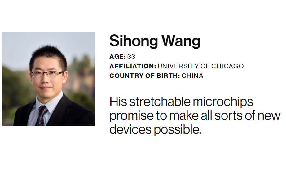 王思泓在榜单的发明家(Inventors)类别,上榜理由为“他开发的可拉缩微芯片使各种新设备成为可能”
