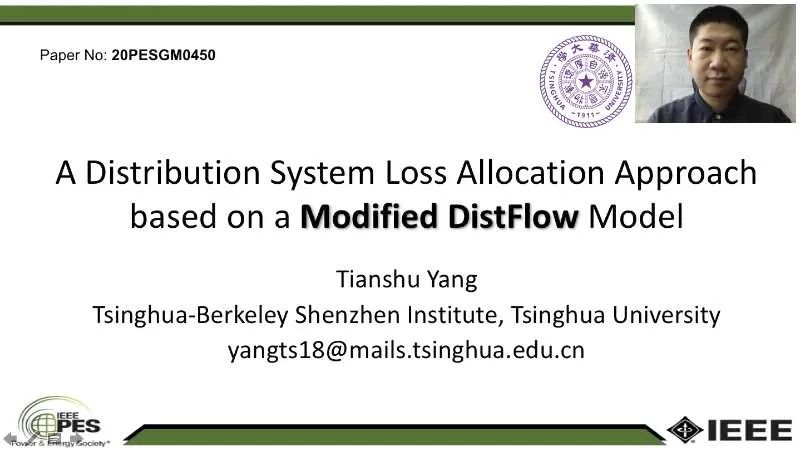 硕士生阳天舒作为第一作者的论文《DistFlow模型的配电网网损分摊方法》(A Distribution System Loss Allocation Approach based on a Modified DistFlow Model),在2020国际电气与电子工程师协会电力与能源协会年会上获得最佳论文奖。该论文的合作者有新葡萄-伯克利深圳学院郭烨教授、博士生邓莉荣、硕士生舒韩、孙宏斌教授、研究科学家沈欣炜博士。阳天舒在论文中提出了一种冷启动的线性线路潮流(cold-start linear branch flow model),基于该潮流模型再提出了一种针对配电网的网损分摊方法,解决了电力市场中以边际网损收费产生网损剩余的问题。