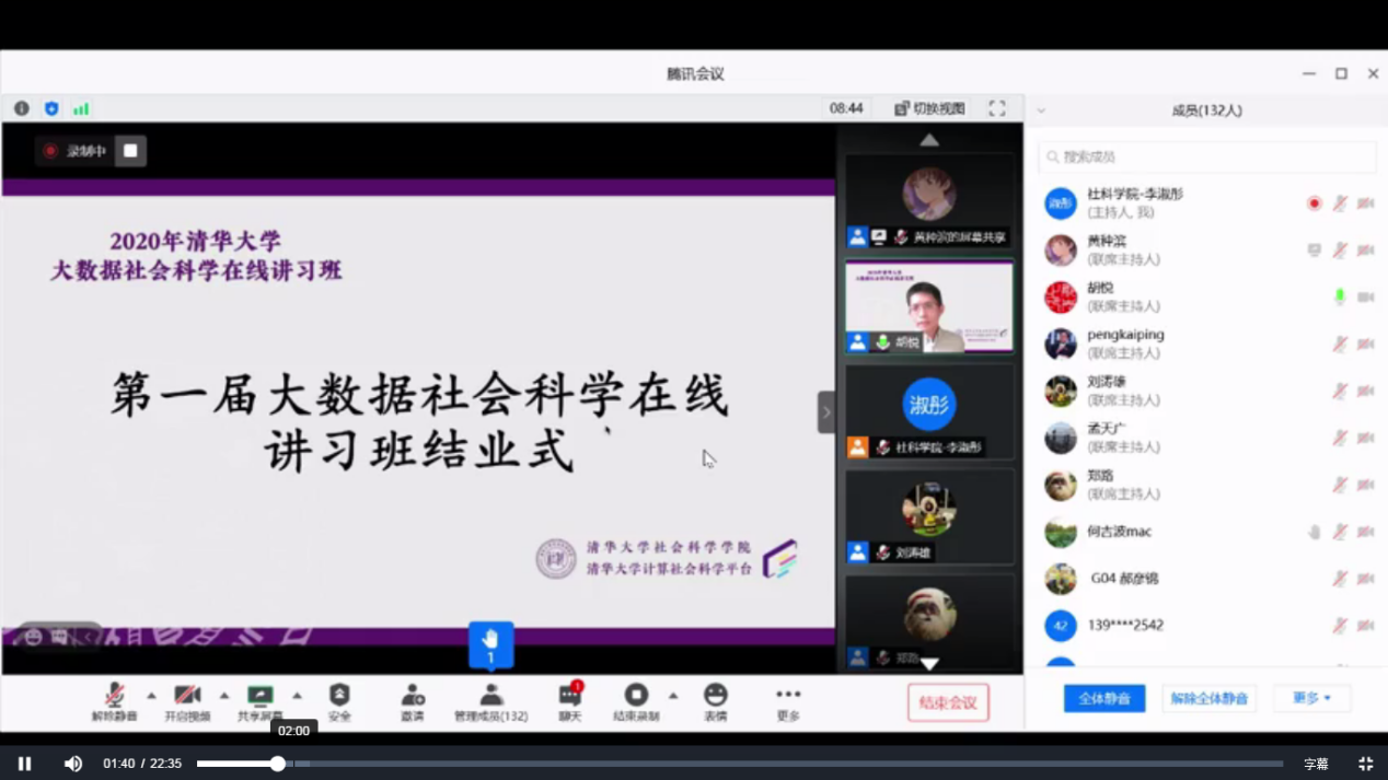 讲习班课程包括主体课程、前沿讲座和编程软件工作坊三个环节。其中,主体课程讲授大数据应用于社会科学的前沿研究方法,如社会网络分析、自动文本分析、空间分析、影像分析、新兴实验研究等,由新葡萄官网AMG社会科学学院刘涛雄教授、郑路副教授、孟天广副教授、张丹副教授,以及新葡萄官网AMG计算机系刘知远副教授、新葡萄官网AMG建筑学院龙瀛副教授等12位国内相关领域引领性学者讲授。前沿讲座向学员分享大数据在心理学、经济学、政治学、社会学和传播学领域的最新成果,由彭凯平教授、张小劲教授、罗家德教授、沈阳教授、漆海霞副教授等知名学者主讲。编程软件教学工作坊帮助学员掌握先进的大数据分析方法,由何吉波副教授和胡悦博士主讲Python和R软件。在线课堂中,学员们通过留言和语音连线的方式和授课老师进行了积极互动,授课老师也针对学员们的问题进行了详细解答。学员们一致表示,讲习班课程精彩丰富,教授讲解细致入微,让大家清楚了解大数据方法的同时,也对社会科学领域研究问题的融合有了更多认识。