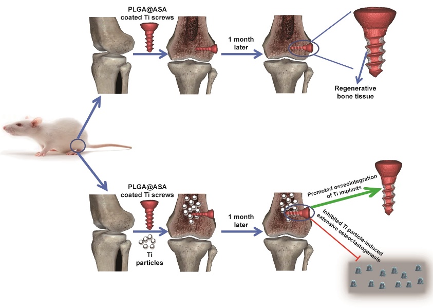 此项工作在《生物材料》(Biomaterials)发表了题为“静电纺PLGA@阿司匹林纳米纤维涂层双向协同克服钛金属植入物无菌性松动问题”(Dual directions to address the problem of aseptic loosening via electrospun PLGA @ aspirin nanofiber coatings on titanium)的研究论文。