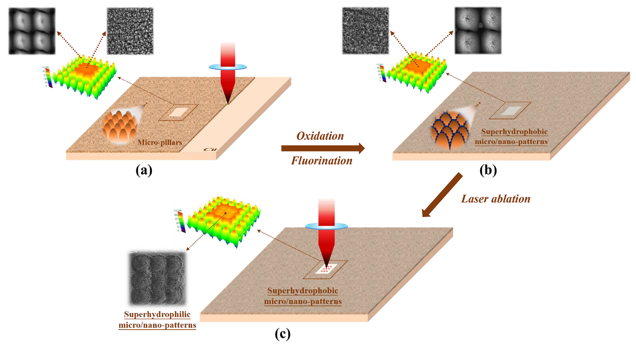 图1 超快激光制备超亲水-超疏水结构策略