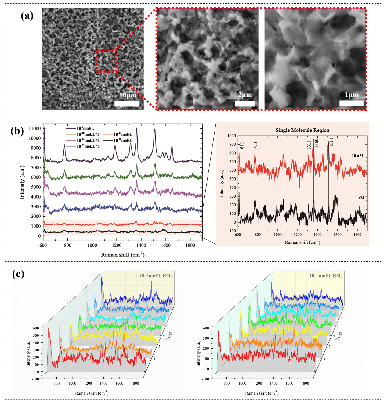 图3 实现阿摩尔每升(10-18M/L)当前国际SERS检测极限并具有良好的稳定性