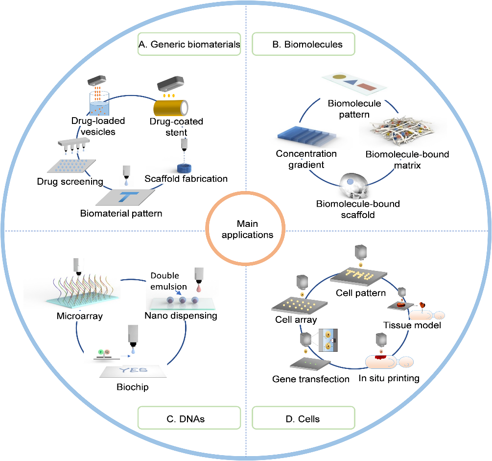 图1 典型喷墨打印生物材料及应用