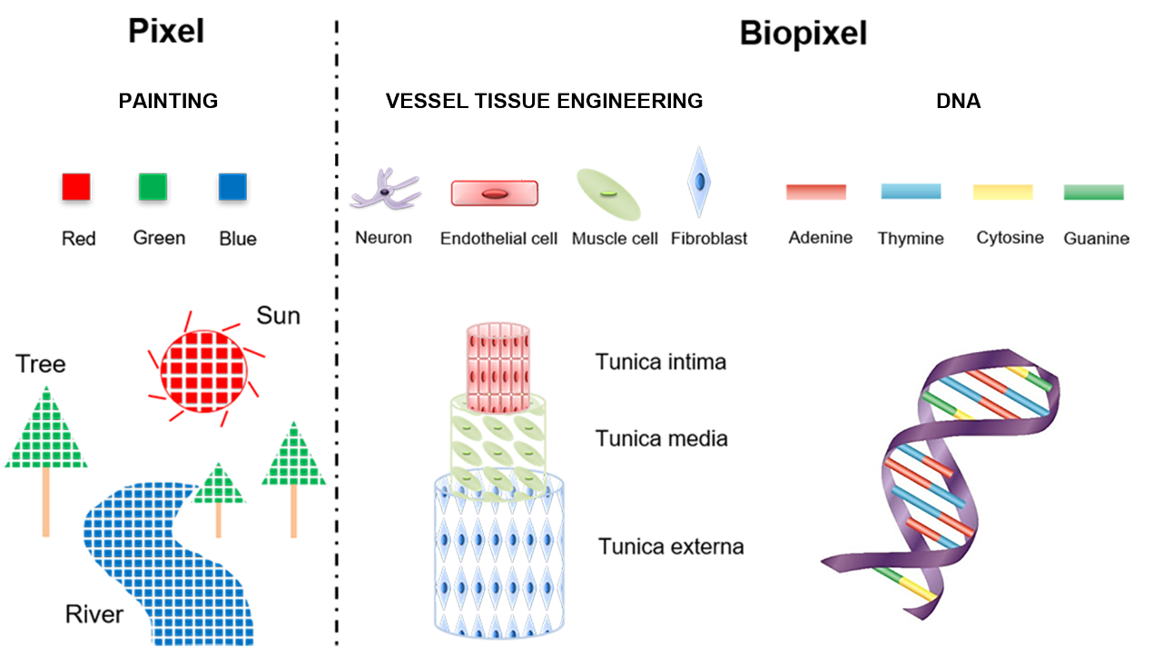 图2 传统印刷像素和“生物像素”类比示意图