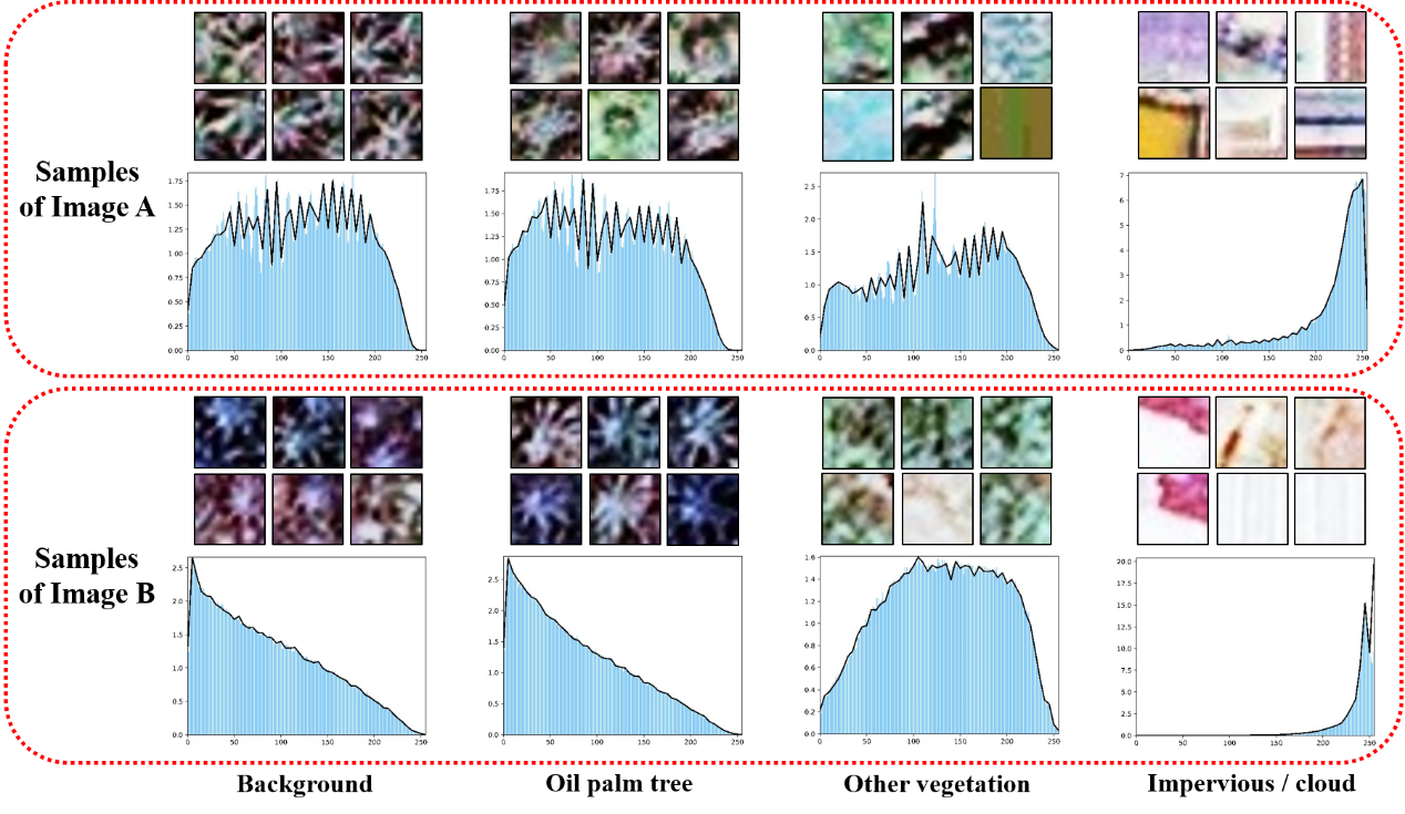 新葡萄新闻网9月23日电 油棕作为一种重要的热带产油作物,具有很高的经济效益和生态研究价值。对油棕的准确识别有利于更好地油棕种植园管理,从而促进棕榈油产量的提高。基于遥感影像和深度学习模型,目前已有很多研究工作实现了高准确率的油棕识别。但是已有的工作主要聚焦于单一的、有限的研究区域。当使用不同传感器、不同时间、不同区域的复杂区域影像时,如果直接运用传统模型做预测,会因为遥感影像之间存在的明显差异,导致油棕检测结果精度出现大幅度的下降(如图1)。这时如果想要保持识别准确率,需要将新的影像样本加入到识别训练中,然而这将需要更多的人工标记成本。