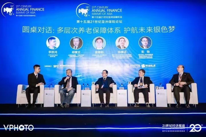 圆桌对话(左起:21世纪经济报道资深记者李致鸿、郑秉文、金维刚、陈秉正、彭勃)